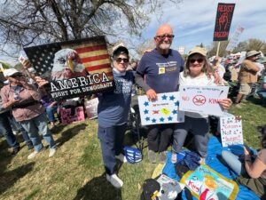 Upwards of 65,000 New Mexicans turned out at 29 No Kings Protests March 28th. The largest, Albuquerque, saw a crowd of around 50,000 but even Las Vegas and Gallup saw crowds of 200-300. There were 3,300 protests around the County and it is estimated that more than 8 million participated. Caucus Members Deb Haaland, candidate for Governor and Senator Harold Pope, Candidate for Lt. Governor attended the Albuquerque event, where Comms Committee Member Mark Finley staffed the water booth. Former Georgia State Legislator, and voting rights advocate Stacy Abrams spoke in Albuquerque which was also attended by Caucus Member Sonya Smith, candidate for NM Secretary of State. In Santa Fe, a principal speaker and first time No Kings participant was U.S. Senator Ben Ray Luján.