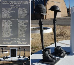 In Clayton, New Mexico there is a veterans Memorial at 118 Smokey Bear Blvd. It commemorates local soldiers who died in WWI, WWII, Korea, and Vietnam.